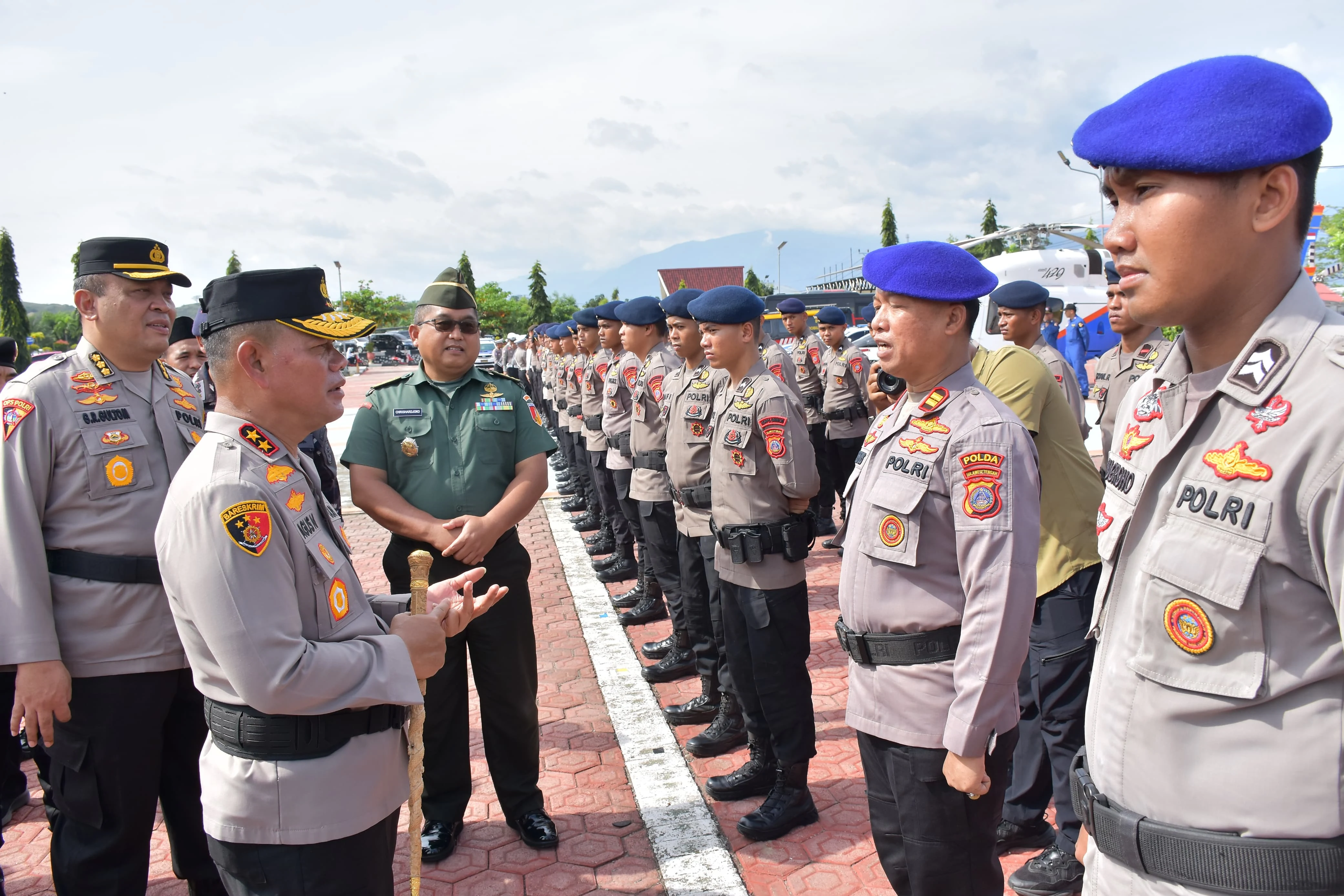 Kapolda Sulteng Irjen Pol. Dr. Agus Nugroho saat memeriksa pasukan yang mengikuti Gelar Pasukan Operasi Keselamatan Tinombala, Senin 10 Februari 2025 [foto terassulteng.com]